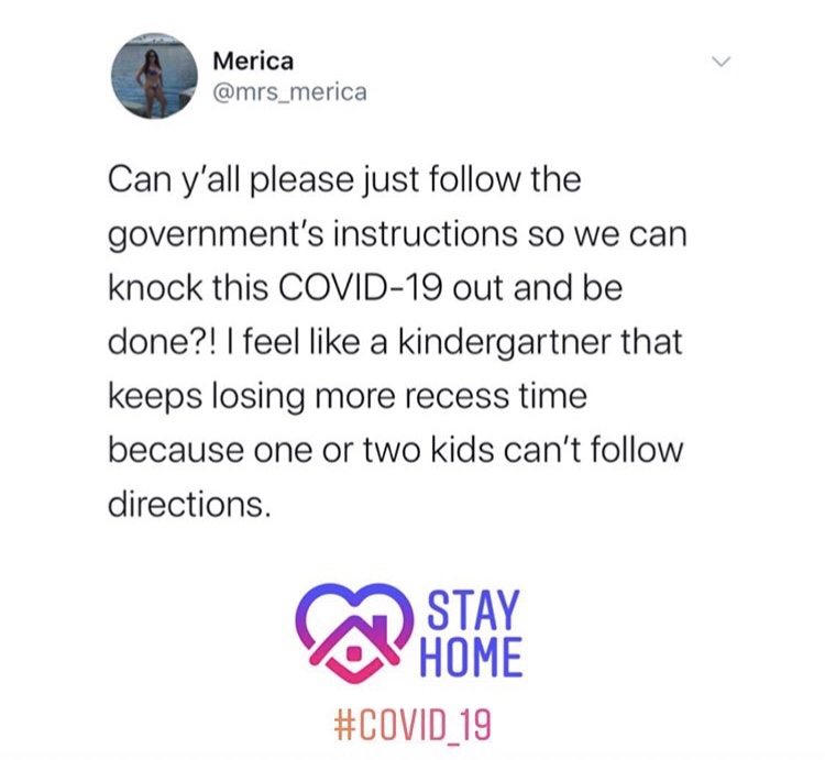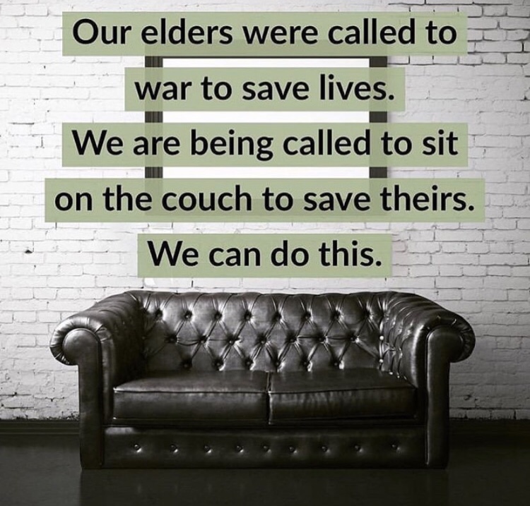 Personally, I’m not a fan of the term social distancing. I feel it gives too much freedom to interpretation and by default, won’t be successful. We are quarantined. Government mandated quarantined. We can’t negotiate the terms because they are black and white. Stay home unless you need medical attention or provisions. Period.